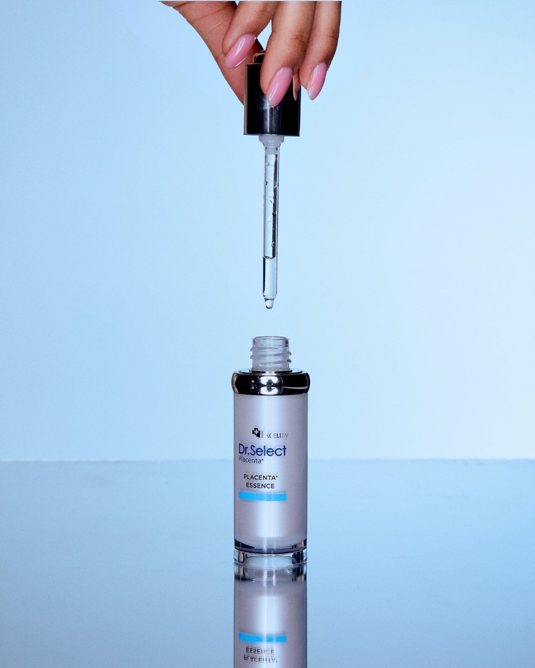 Excelity Dr.Select Placenta Essence accelerates skin cell regeneration, firms the skin, and restores a fresh, radiant appearance.